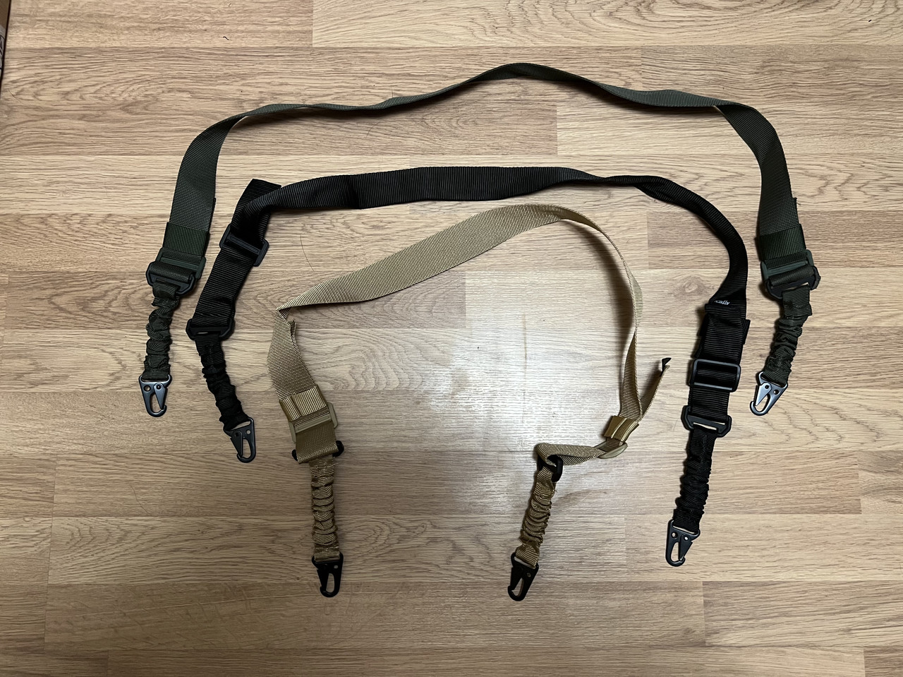 Сумісний з будь-якою гвинтівкою. Його довжина регулюється. Ширина: 38 мм Максимальна довжина: 1,4 м Вага: 135 г Доступний у кольорах хакі-чорний та бежевий. Тканина виготовлена ​​з міцної поліефірної нитки.