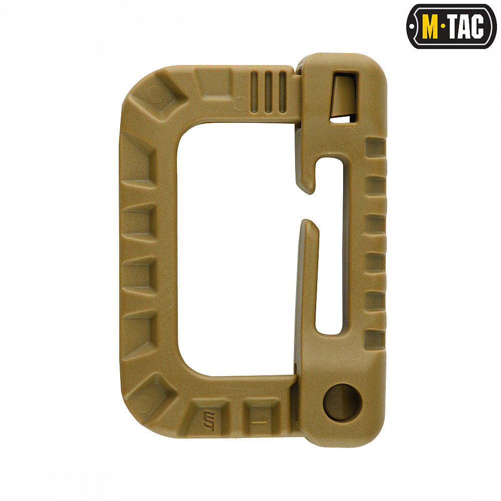 Карабін пластиковий Grimlock виконаний з високоякісного ацеталю – термопластичного полімера напівкристалічної структури. Використовується для закріплення аксесуарів, строп, додаткового спорядження, сумісний з системою MOLLE. Нова безкнопкова конструкція карабіна підвищує загальну надійність і зручність роботи в рукавичках. Застосування ацеталю також сприяє посиленню зносостійкості, твердості, формостійкості виробу, а також робить його легшим.