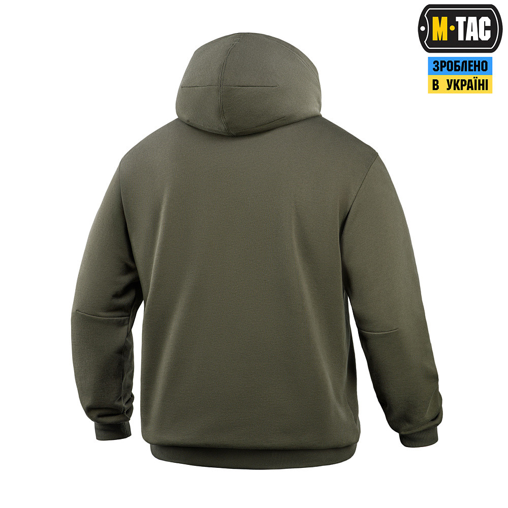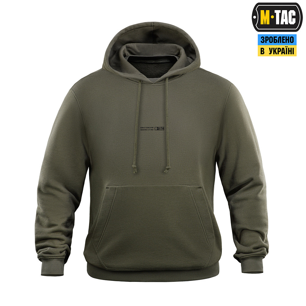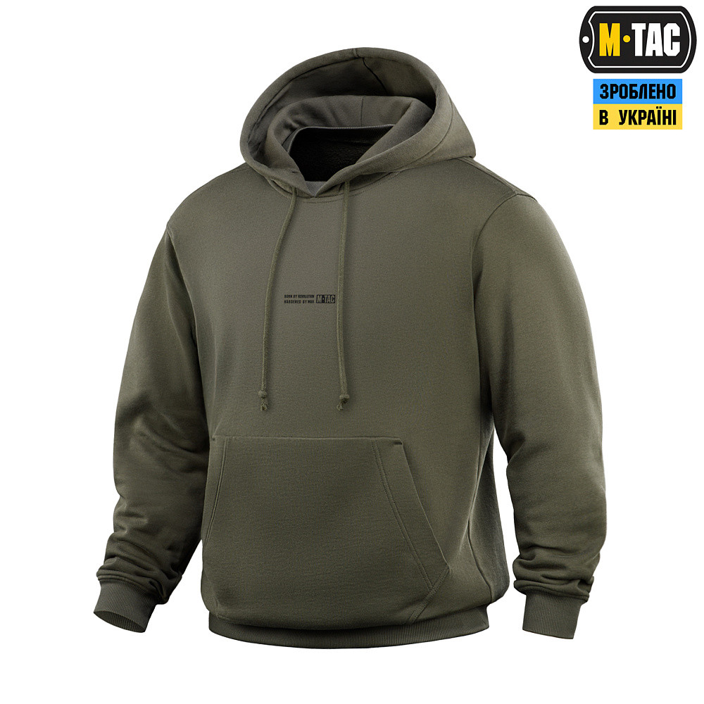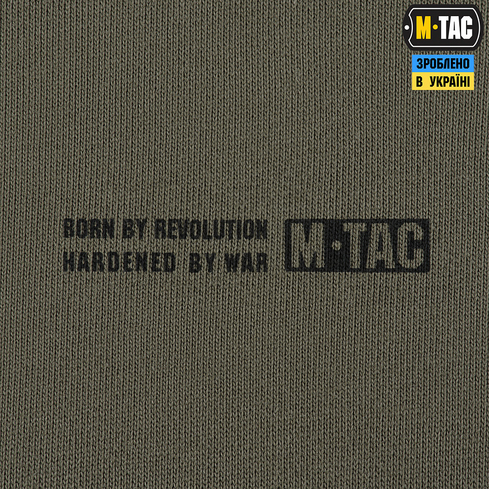 M-Tac кофта Hoodie Born by Revolution Hard Ranger Green Бренд М-Тас створив нову КОФТУ HOODIE BORN BY REVOLUTION HARD, яка вдало поєднує у собі зручний крій та якісні матеріали. Кофта пошита з щільної 100% бавовни – повітропроникного, зносостійкого та гіпоалергенного матеріалу. Також, даний матеріал проходив попереднє промислове прання, завдяки чому, кофта не буде всідатись під час експлуатації. На грудях кофти нанесено логотип М-Тас, а також гасло бренду: Born by Revolution – Hardened by War, що в перекладі означає “Народжений революцією – загартований війною”. Кофта Hoodie Born by Revolution Hard виконана у стилі Oversize (з англ. – великий, широкий), характерними рисами якого є: вільний крій, візуальний ефект безрозмірності, мінімалістичний дизайн та універсальність. Завдяки такому покрою кофти, вона забезпечуватиме максимальний комфорт при використанні. Зручний капюшон кофти регулюється за об’ємом та відмінно захищає від вітру і негоди. Манжети на рукавах і поясі з трикотажної резинки зберігають форму та запобігають потраплянню холодного повітря всередину виробу. Матеріал: 100% бавовна; Прати при температурі не більше 30°. Не рекомендовано сушити в сушильній машині.
