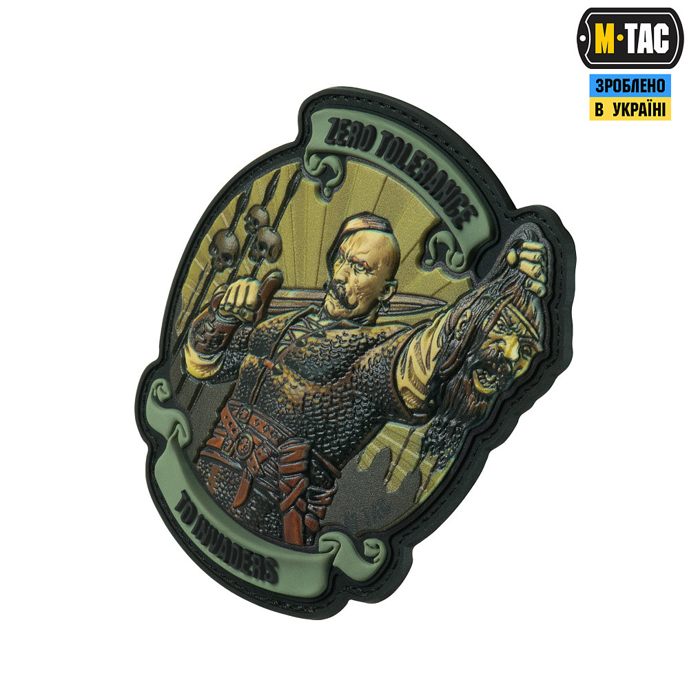 M-TAC НАШИВКА ZERO TOLERANCE PVC OLIVE Нашивка Zero Tolerance від бренду М-Тас відображає дух героїчної епохи наших предків та виражає готовність боронити рідну землю від загарбників. На патчі зображений один з дружинників Ярослава Мудрого з оголеним мечем в одній руці та відрубаною головою ворога, переможно піднятою вверх в іншій. У 1036 році Ярослав Мудрий разом зі своєю дружи́ною та воями завдав нищівної поразки печенігам – загарбникам, що тривалий час здійснювали набіги на Київську Русь. Поразка була настільки сильною, що печеніги не тільки більше ніколи не робили походів на Київську Русь, а й повністю втратили домінуюче становище в степах. Минають віки, але традиції наших предків досі залишаються актуальними. Тож “Нульова толерантність до загарбників” однозначно дає зрозуміти, що ми не маємо наміру терпіти агресію з боку кого-небудь та завжди готові захищати рідну землю. Нашивка виготовлена з високоякісного ПВХ матеріалу (полівінілхлориду) з нанесенням повноколірного друку. Завдяки особливій технології виготовлення, патч виглядає об’ємним, а зображення чітке навіть під кутами. Кріпиться на одяг, сумки, рюкзаки або спорядження за допомогою велкро липучки. Розмір: 8.7 х 9.7 см Матеріал: ПВХ (полівінілхлорид) Додатково: липучка для кріплення