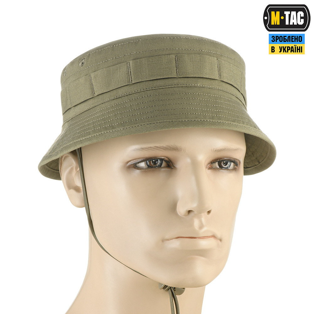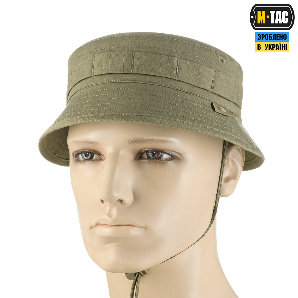 Зручна панама від бренду M-Tac відмінно підійде для повсякденного використання в спекотну пору року. Пошита з міцної та якісної тканини ріп-стоп (поліестер, бавовна, еластан). З вивороту всі шви приховані. Такий спосіб обробки швів робить панаму більш зручною при тривалому носінні, а також підвищує її стійкість до зношування. Друга генерація панами відрізняється особливим кроєм з короткими напівжорсткими полями, що захищають від сонячних променів та водночас зручніші при стрільбі. По периметру тулії нашитий Molle інтерфейс для кріплення додаткових засобів маскування. Панама оснащена спеціальним шнуром, що не дозволить їй злетіти з голови під час сильних поривів вітру. Також вона має люверси, які забезпечують відмінну вентиляцію. Матеріал: поліестер, бавовна, еластан Особливості: особливий крій з короткими напівжорсткими полями; Molle інтерфейс для кріплення додаткових засобів маскування; спеціальний шнур, що не дозволить панамі злетіти з голови.