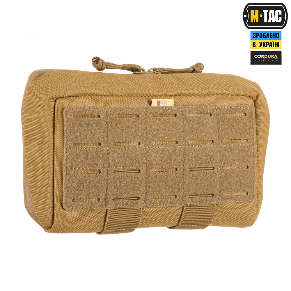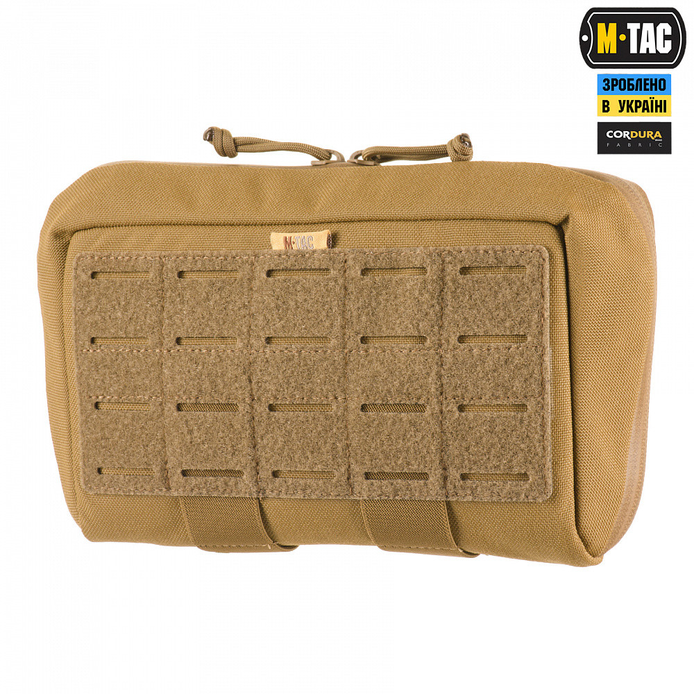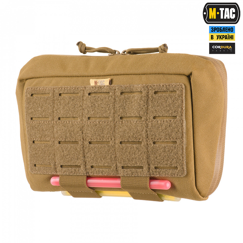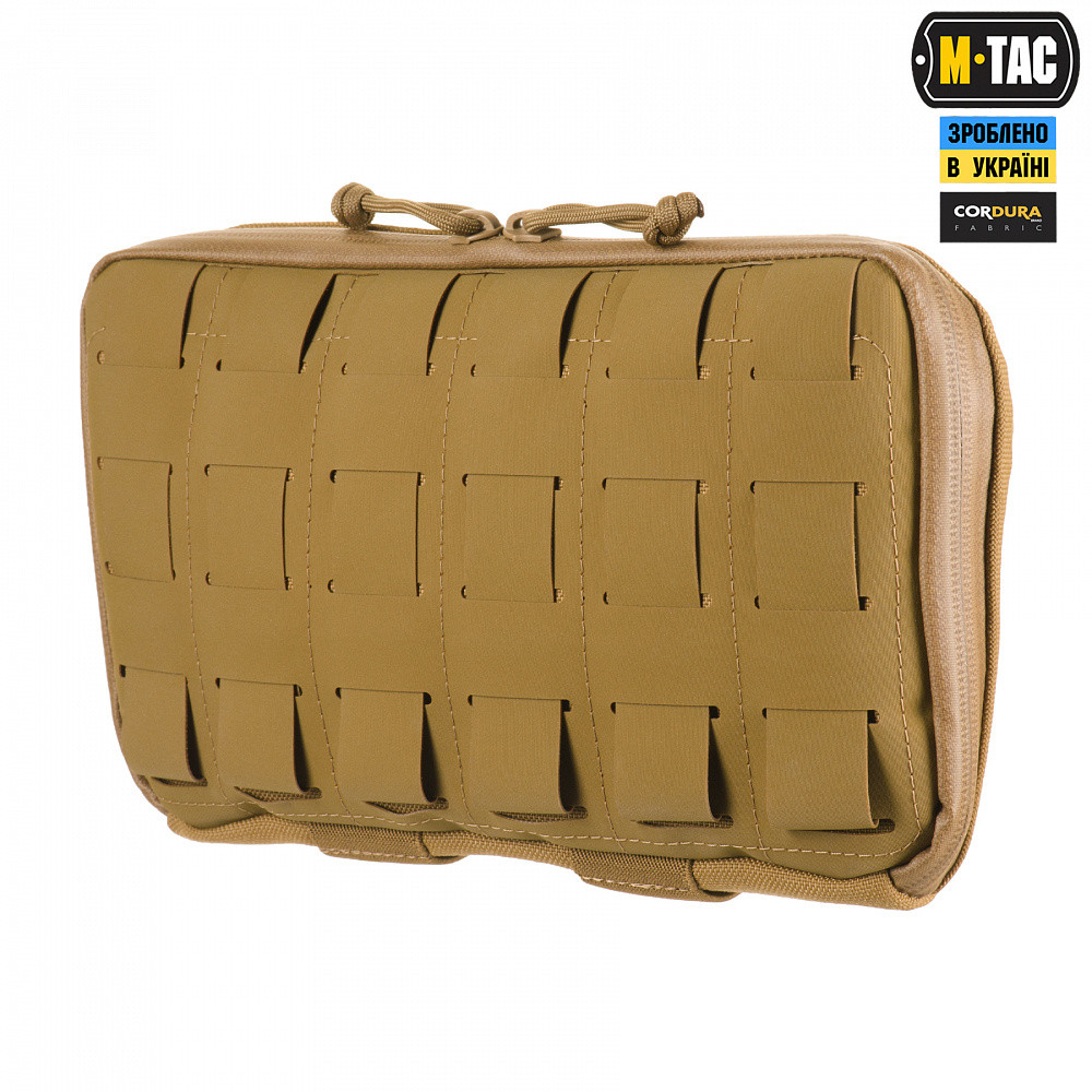 M-TAC ПІДСУМОК ADMIN LARGE ELITE COYOTE Практичний та функціональний підсумок Admin Large Elite від бренду М-Тас відмінно доповнить Ваш індивідуальний комплект спорядження. Дана модель призначена для зберігання документів, мобільного телефону, ключів, ліхтарика, карт та багатьох інших речей. Виготовлений з високоякісного матеріалу Cordura 500D – надміцної тканини, стійкої до стирання та високих навантажень. Підсумок має одне велике відділення, що закривається на вологозахисну блискавку AquaGuard, яка вбереже вміст від вологи. Всередині стінки підсумка зроблені з велкро велюру, що дозволяє прикріпити модульні вставки. Спереду нашита велкро панель, яка виготовлена ​​за технологією LaserCut, і призначена для кріплення спорядження та патчів. Знизу виробу дизайнери бренду додали еластичну резинку під хімсвітло або ручку. Admin Large Elite кріпиться до спорядження за допомогою молле інтерфейсу, зробленого за технологією Laser Cut. Компактний та легкий підсумок стане союзником при виконанні широкого спектра завдань та однозначно зацікавить любителів сучасного тактичного спорядження. Матеріал: Cordura 500D Фурнітура: AquaGuard Розміри: 25 х 14.5 х 3.5 см Завдяки своїм унікальним якостям Cordura широко застосовується в тактичному спорядженні військових, сил правопорядку і спеціального призначення. В основному – це матеріали з лінійною щільністю 1000d і 500d. Лінійна щільність – це співвідношення маси нитки матерії і її довжини. Вимірюється в Денье (denier). Ця одиниця виміру загалом застосовується для нейлонових виробів. Відповідно, чим вище цей показник, тим щільніша і важча тканина. Фізико-технічні характеристики CORDURA 1000D дуже високі, розривне навантаження становить близько 3000 Н, роздираюче навантаження близько 150 Н. Стійкість до стирання більше 50000 циклів. Використовується для одягу, чохлів, підсумків. Вироби, пошиті з матеріалів CORDURA безсумнівно пройдуть випробування часом і відстанню. CORDURA – це міцність, надійність і стиль. За показниками міцності вона поза конкуренцією.