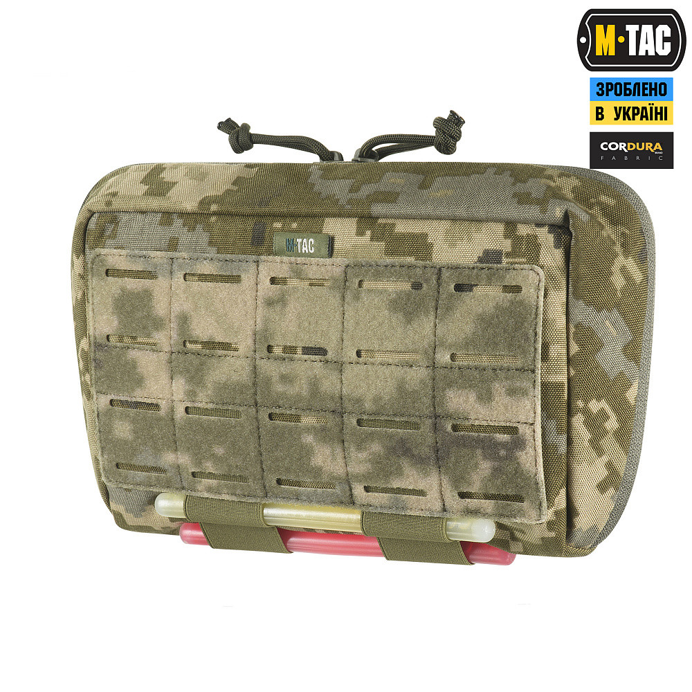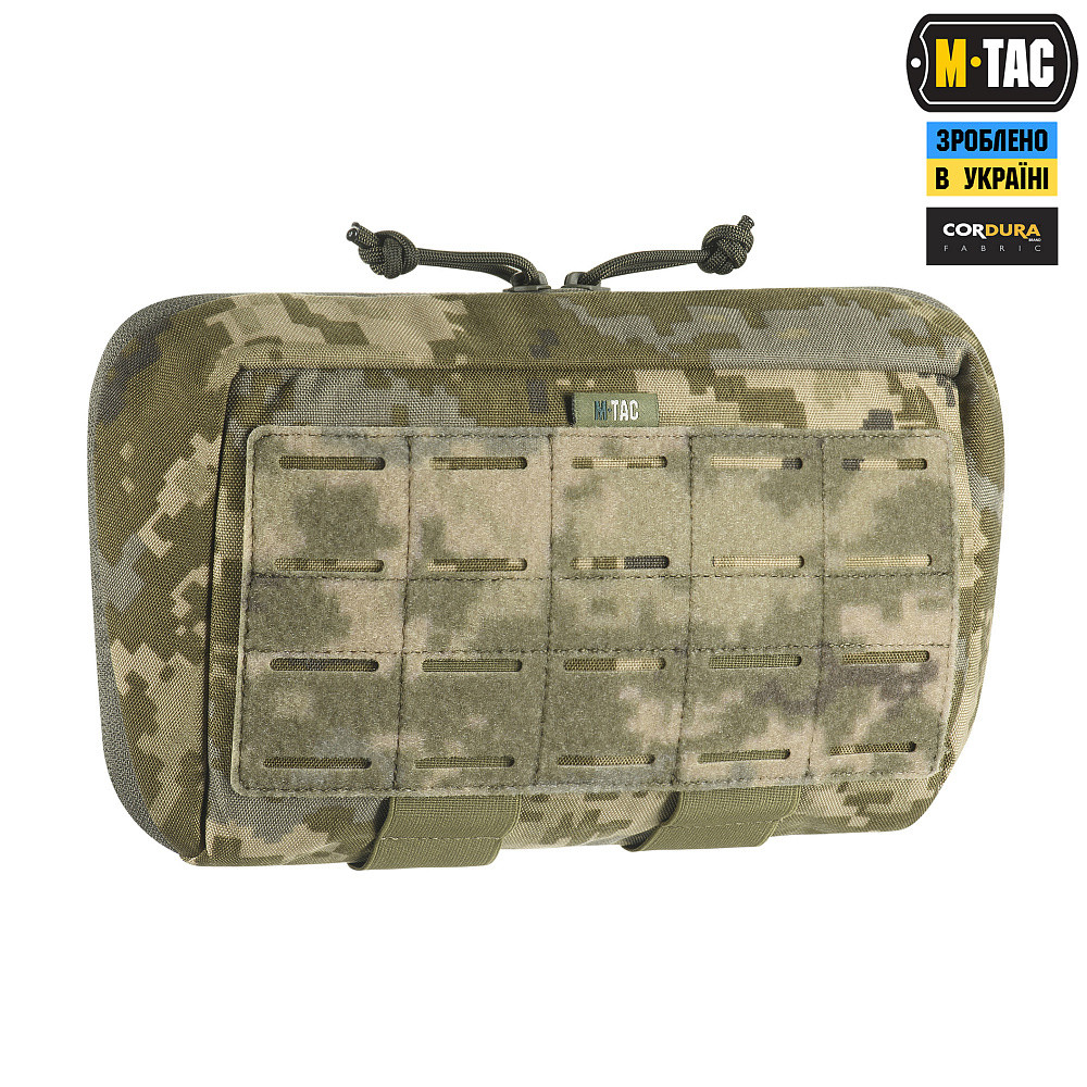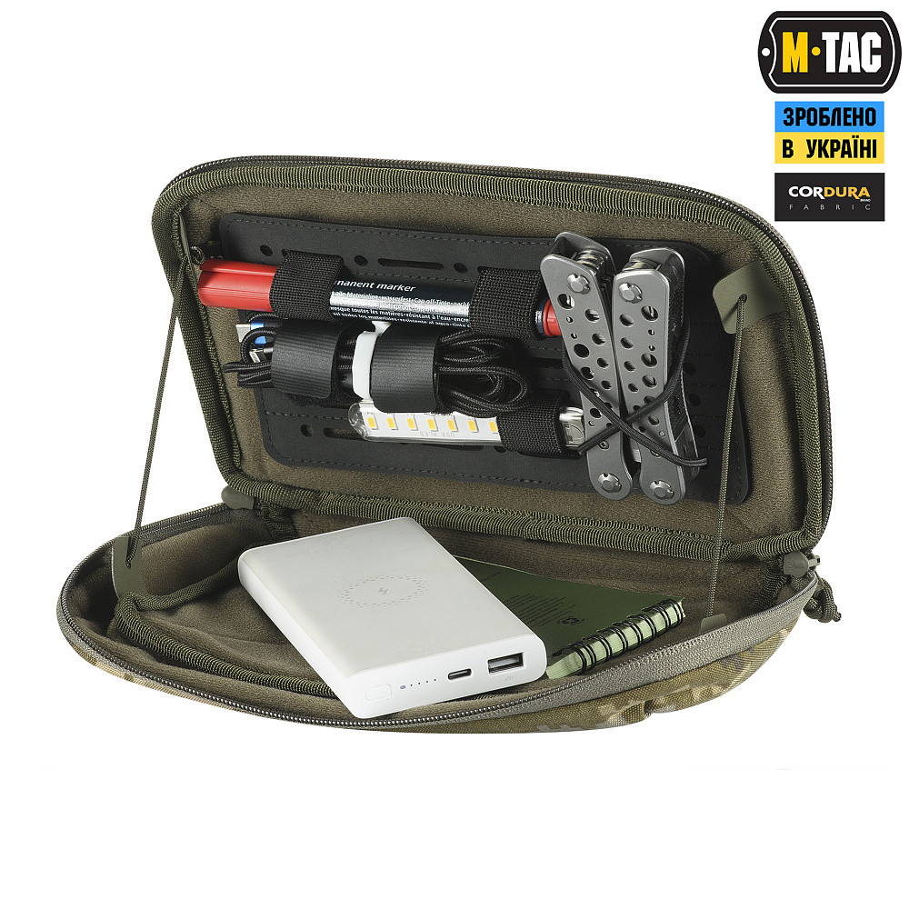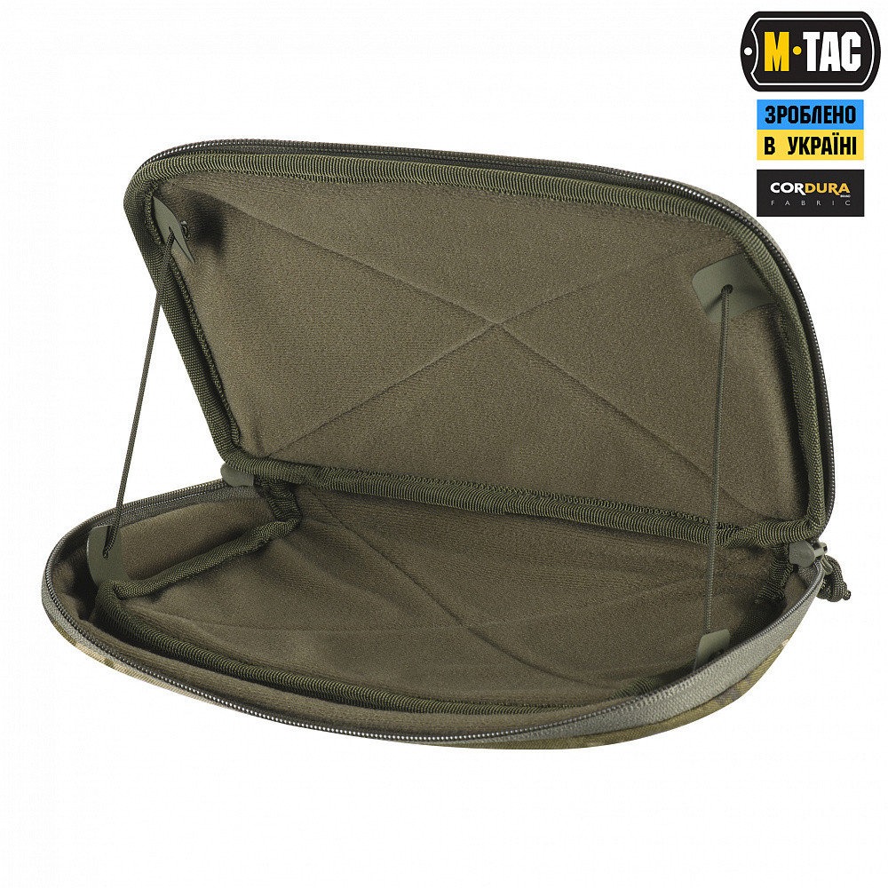M-TAC ПІДСУМОК ADMIN LARGE ELITE MM14 Практичний та функціональний підсумок Admin Large Elite від бренду М-Тас відмінно доповнить Ваш індивідуальний комплект спорядження. Дана модель призначена для зберігання документів, мобільного телефону, ключів, ліхтарика, карт та багатьох інших речей. Виготовлений з високоякісного матеріалу Cordura 500D – надміцної тканини, стійкої до стирання та високих навантажень. Підсумок має одне велике відділення, що закривається на вологозахисну блискавку AquaGuard, яка вбереже вміст від вологи. Всередині стінки підсумка зроблені з велкро велюру, що дозволяє прикріпити модульні вставки. Спереду нашита велкро панель, яка виготовлена за технологією LaserCut, і призначена для кріплення спорядження та патчів. Знизу виробу дизайнери бренду додали еластичну резинку під хімсвітло або ручку. Admin Large Elite кріпиться до спорядження за допомогою молле інтерфейсу, зробленого за технологією Laser Cut. Компактний та легкий підсумок стане союзником при виконанні широкого спектра завдань та однозначно зацікавить любителів сучасного тактичного спорядження. Матеріал: Cordura 500D Фурнітура: AquaGuard Розміри: 25 х 14.5 х 3.5 см Завдяки своїм унікальним якостям Cordura широко застосовується в тактичному спорядженні військових, сил правопорядку і спеціального призначення. В основному – це матеріали з лінійною щільністю 1000d і 500d. Лінійна щільність – це співвідношення маси нитки матерії і її довжини. Вимірюється в Денье (denier). Ця одиниця виміру загалом застосовується для нейлонових виробів. Відповідно, чим вище цей показник, тим щільніша і важча тканина. Фізико-технічні характеристики CORDURA 1000D дуже високі, розривне навантаження становить близько 3000 Н, роздираюче навантаження близько 150 Н. Стійкість до стирання більше 50000 циклів. Використовується для одягу, чохлів, підсумків. Вироби, пошиті з матеріалів CORDURA безсумнівно пройдуть випробування часом і відстанню. CORDURA – це міцність, надійність і стиль. За показниками міцності вона поза конкуренцією.
