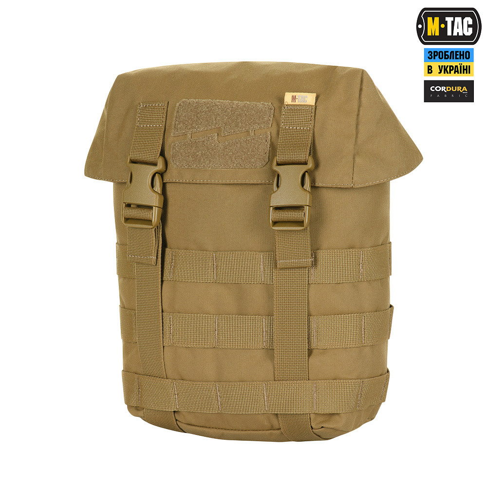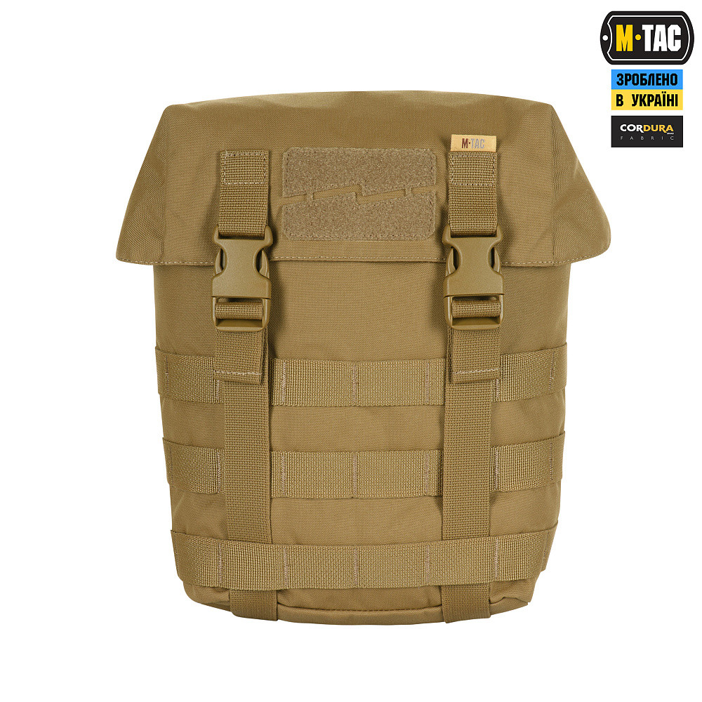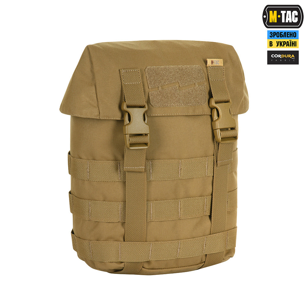 M-TAC ПІДСУМОК “СУХАРКА” GEN.3 COYOTE Підсумок «Сухарка» від бренду М-Тас відмінно підійде для використання в польових умовах, а зручна конструкція дозволить вмісти весь необхідний мінімум речей. Виготовлена із Cordura 500D – надміцного матеріалу, стійкого до стирання та високих навантажень. «Сухарка» закривається кришкою-клапаном за допомогою регульованих по довжині строп з фастексами від Woojin. Підсумок має одне глибоке відділення, верх якого затягується еластичним шнуром із фіксатором. Така конструкція досить продумана і захищає вміст від мимовільного випадання. Підсумок кріпиться до спорядження за допомогою Molle інтерфейса. Ззаду сумки дизайнери передбачили ручку для перенесення. На клапані нашита велкро панель для кріплення патчів та ідентифікаторів. Розміри: 24 х 18 х 8 см Матеріал: Cordura 500D Фурнітура: WJ (Woojin Plastic, Корея) Система кріплення: MOLLE