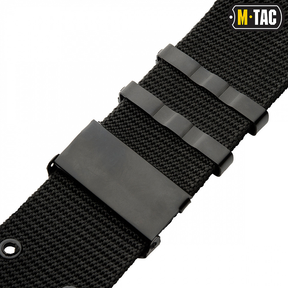 Нейлоновий ремінь M-Tac з пластиковою пряжкою. Перевагою даного ременя є можливість розкрити пряжку однією рукою – що, в теорії, дозволяє пораненому військовослужбовцю самостійно позбавитися зайвих елементів спорядження. Даний ремінь є реплікою ременя який був частиною американської РПС (Ремінно-Плечової Системи), так званої системи A.L.I.C.E. (Англ. All-Purpose Lightweight Individual Carrying Equipment – «Багатоцільове Полегшене Приватне Переносне Спорядження»), яка була прийнята на озброєння в армії США на початку 80-х років. Також непогано працює і просто в якості ременя на пояс, навіть якщо у Вас немає ніяких підсумків. Просто треба мати на увазі, що цей пояс трохи ширше, ніж звичайні брючні ремені (5.5 см), тому перевіряйте розміри брючних петель перед покупкою. Матеріал: 100% поліестр Ширина ременя: 5.5 см