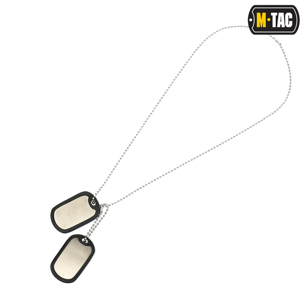 Військові жетони для набивання DOG-TAG. Жетон військовослужбовця (медальйон смерті) – знак, що у бойових умовах дозволяє швидко розпізнати вбитих і поранених, тому всі військовослужбовці повинні обов’язково його носити при собі. Зараз порядок заповнення американського армійського жетона став наступним: перший рядок – прізвище, другий – ім’я та ініціал, третій – номер соціального забезпечення, четвертий – група крові та резус-фактор, п’ятий – віросповідання. Вказується лише позитивний резус-фактор (POS). Віросповідання: Orthodox (православний), Protestant (протестант), Baptist (баптист), Catholic (католик), Hebrew (юдей), No preference (немає переваг), Atheist (атеїст). У корпусі морської піхоти США на сучасному жетоні вказуються: перший рядок – прізвище, другий – ім’я та ініціали, третій – особистий номер і група крові, четвертий – USMC, номер розміру протигаза, п’ятий – віросповідання. У морпіхів США особистий номер може бути 5, 6 або навіть 7-значним. Розміри протигазів – XS, S, M, L, XL. Комплектація: – два жетони – дві резинки (глушники) – два ланцюжки (велика та маленька)