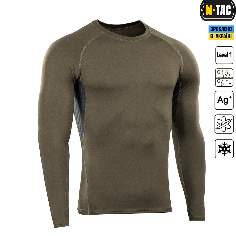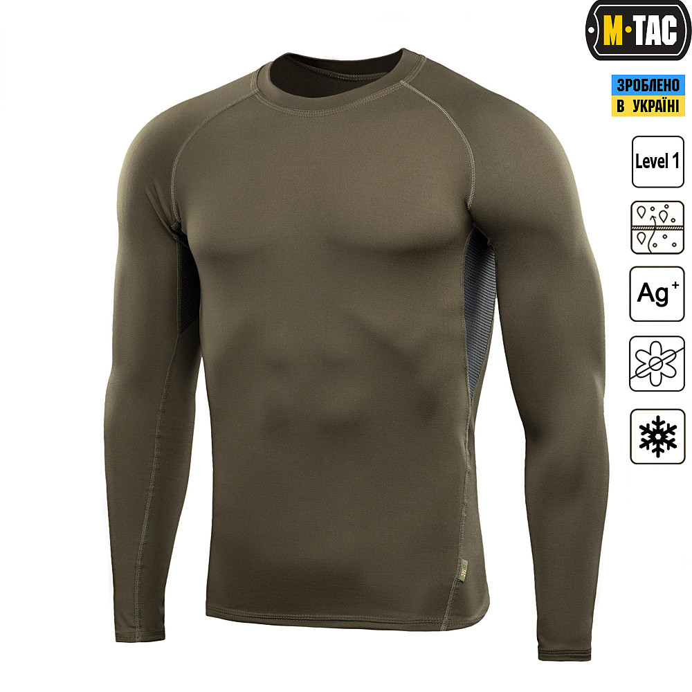 M-TAC ТЕРМОБІЛИЗНА THERMOLINE OLIVE Термобілизна ThermoLine – це білизна першого шару, яку створено для підвищеного комфорту при будь-якому виді фізичних навантажень, спортивної активності, повсякденного носіння. Використовується при нульових і мінусових температурах, забезпечує чудову терморегуляцію і повітропроникність. Виведення вологи і висихання тканини відбувається набагато швидше, ніж у бавовни, шерсті, нейлону, акрилу т.ін. Не вбирає запахи. Має потужний антибактеріальний захист і усунення запаху поту, завдяки додаткам на основі срібла freshFX. Просочення: антибактеріальна/SILVERION гіпоалергенна Догляд: – прання ручне і машинне, щонайбільше при 30 ° C – не обробляти в хімчистці – не сушити в машинці і не віджимати – не відбілювати Особливості: тканина: двокомпонентне ворсисте волокно, що ефективно відводить вологу з поверхні шкіри, захищаючи організм від переохолодження; забезпечує зігріваючий ефект при збереженні тіла сухим. Розміри в наявності: XS S M L XL 2XL