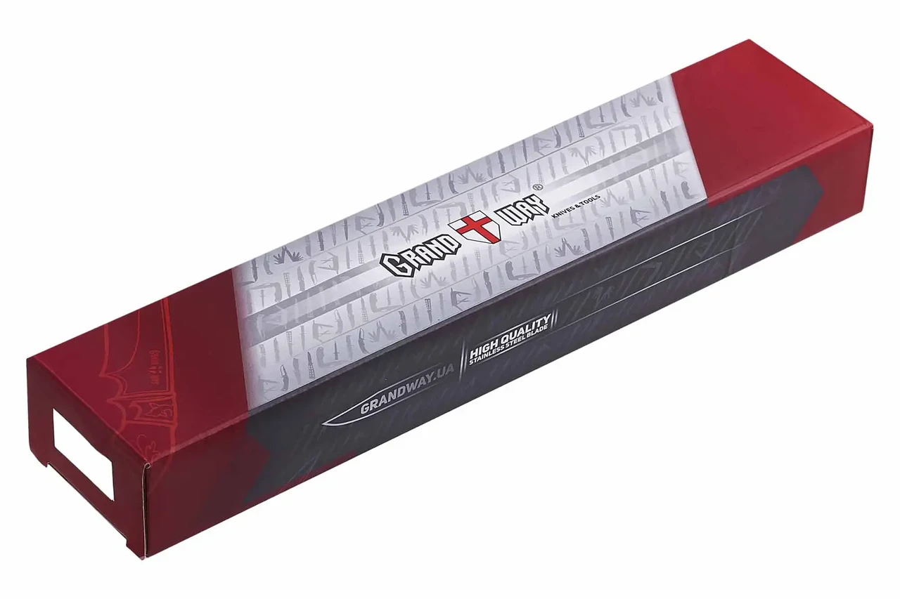 Виробник: Grand Way Вид ножа: Метальний Загальна довжина, мм: 189 Довжина леза, мм: 85 Довжина рукояті, мм: 104 Товщина леза, мм: 3.8 Ширина леза, мм: 30.8 Марка сталі: 420 Твердість сталі, HRC: 52-55 Поверхня леза: Satin Finish Товщина рукояті, мм: 3.8 Матеріал рукоятки: Метал Наявність чохла: так Матеріал чохла: Кордура Маса, м: 92 Ручна робота: ні Вид упаковки: картонна упаковка