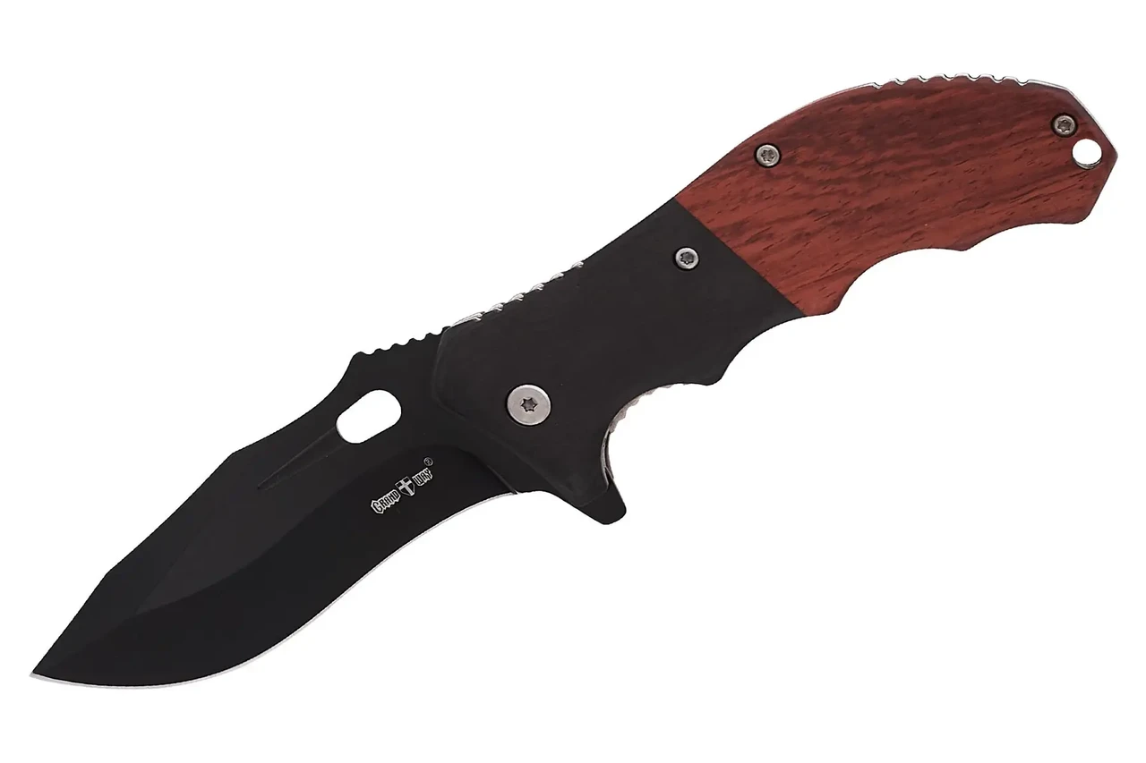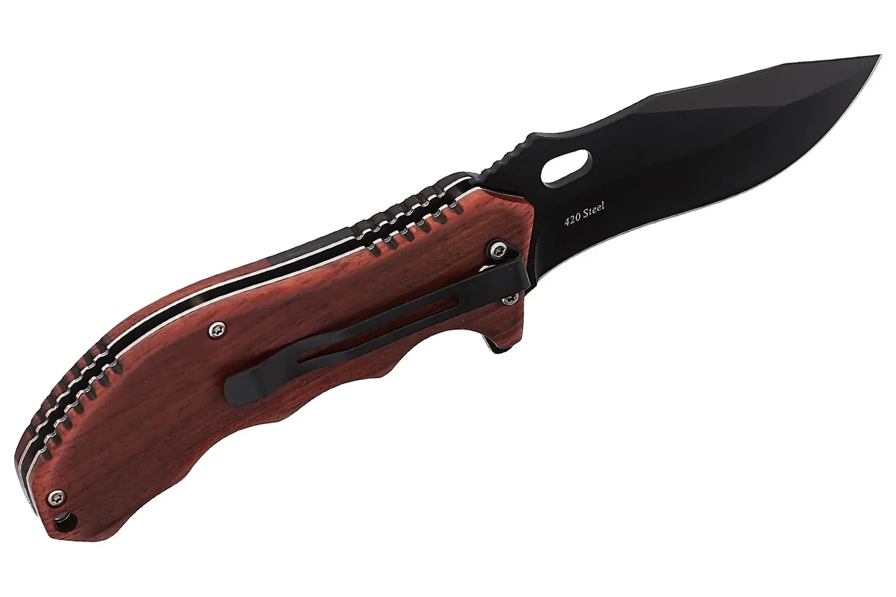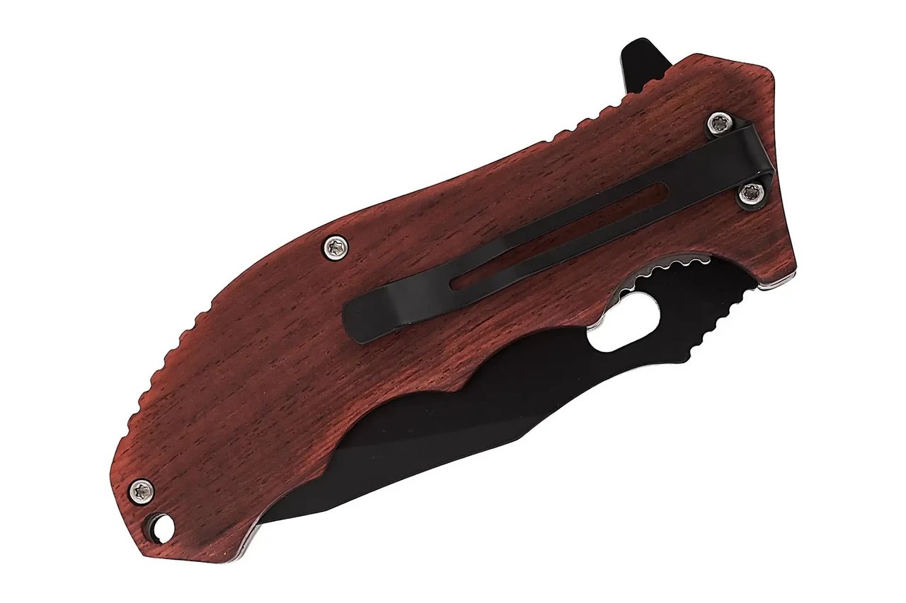 Виробник: Grand Way Вид ножа: Складний Загальна довжина, мм: 215 Довжина леза, мм: 92 Довжина рукояті, мм: 123 Товщина леза, мм: 2.9 Ширина леза, мм: 34 Марка сталі: 420 Твердість сталі, HRC: 52-55 Поверхня леза: Paint Товщина рукояті, мм: 17 Матеріал рукоятки: Дерево Наявність кліпси: так Тип замку: Liner Lock (Assisted Lock) Маса, м: 153 Вид упаковки: кольорова картонна коробка