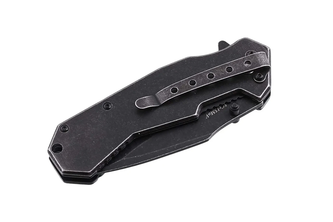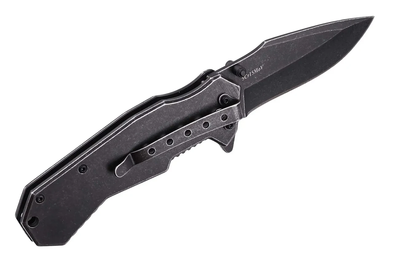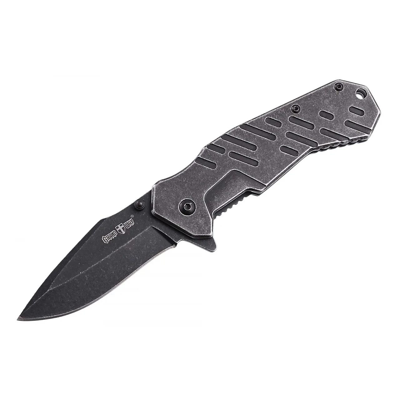 Виробник: Grand Way Вид ножа: Складний Загальна довжина, мм: 190 Довжина леза, мм: 75 Довжина рукояті, мм: 115 Товщина леза, мм: 115 Ширина леза, мм: 29 Марка сталі: 5Cr15MoV Твердість сталі, HRC: 56-57 Поверхня леза: Black Stonewash Матеріал рукоятки: Метал Наявність кліпси: так Тип замку: Liner Lock Наявність чохла: ні Маса, м: 208 Вид упаковки: кольорова картонна коробка