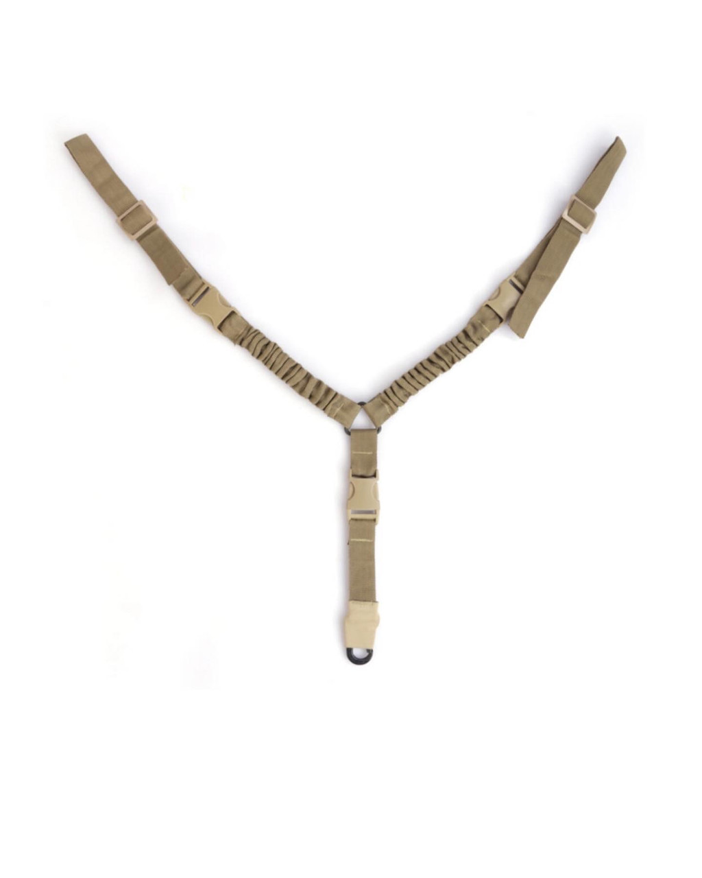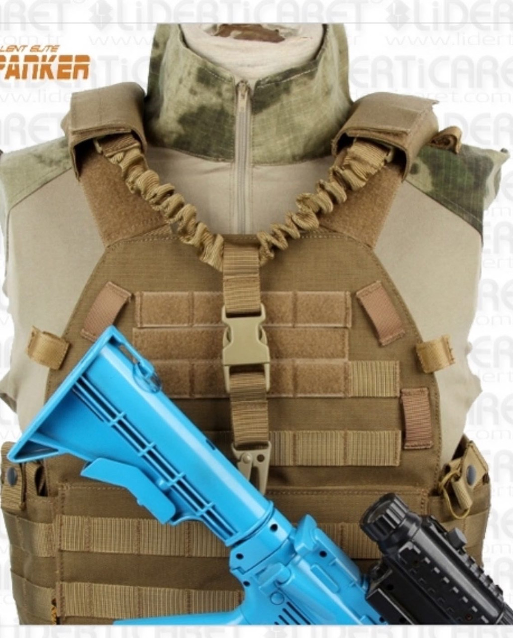 Використовувати лише з бронежилетами, нагрудниками та іншими тактичними жилетами. Кріпиться до верхньої частини плечей за допомогою D-кільця. Забезпечує дуже просту, але дуже ефективну фіксацію, не має ременів на шиї, що заважають та обмежують рухи, він також знімає вагу зброї з вашої шиї, підвищуючи комфорт при використанні протягом тривалого періоду часу. Функції: • Виготовлений із міцної нейлонової стрічки 30 мм та високоякісного банджі-шнура. • 3 нейлонові пряжки Fastex для легкого зняття та кріплення до тактичних жилетів або бронежилетів. • Подвійний банджі-дизайн із 12-сантиметровим вигином •Кріпиться через D-подібні кільця Повністю регульований. • 3-шарова нейлонова нитка краще, ніж звичайна промислова нейлонова нитка.