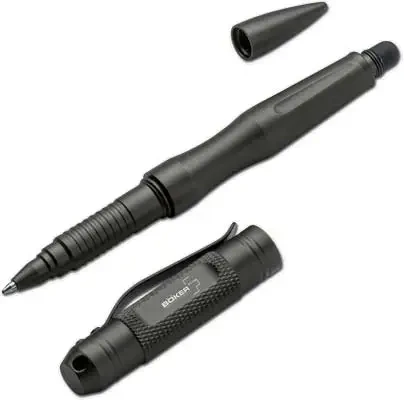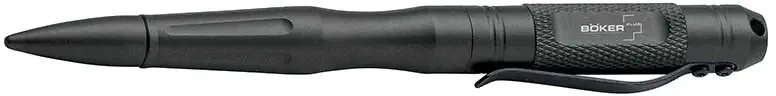 Враховуючи все більше поширення планшетних комп’ютерів, тактична ручка Boker Plus iPen Security забезпечена гумовим накінечником для використання на сенсорних екранах, який добре захищений задньою кришкою, що відкручується. Як завжди, великий ковпачок передньої частини приховує стандартний кульковий накінечник. Полірований алюмінієвий корпус має додаткову поверхню для нанесення гравіювання. Сумісна зі змінними стрижнями Parker giant та Fisher Space Pen. Для заміни стрижня ручка забезпечена різьбою, яка відкручується проти годинникової стрілки. Це запобігає випадковому розкручуванню корпусу ручки під час відкручування ковпачка.