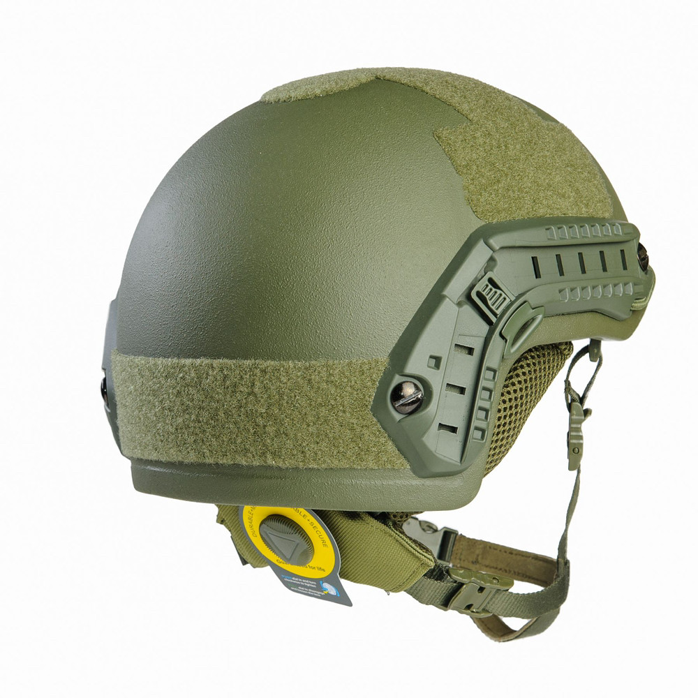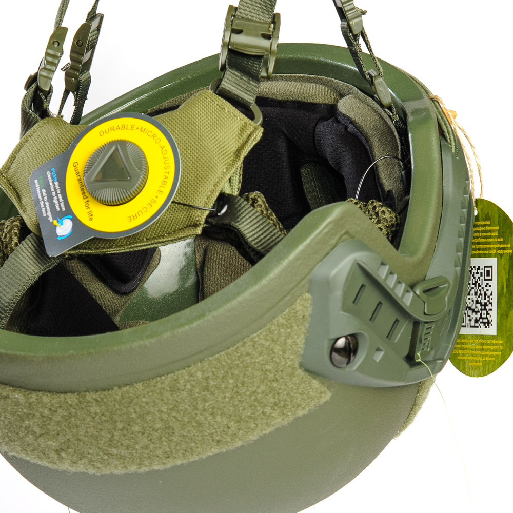 Опис Шолом типу FAST, це легкий штурмовий шолом класу IIIA, який зроблений із сучасного матеріалу, який вельми успішно працює для захисту від куль і уламків, а його міцність перевищує міцність сталі. Шолом укомплектований рейками ARC (Accessory Rail Connectors) для швидкого встановлення допоміжного обладнання. Внимание! За зазначену ціну ви отримаєте потужну допоміжну комплектацію! Баллістичний шолом Fast Wendy Helmet складається: монолітний купол. На його зовнішній поверхні симетрично розташовуються панелі Velсro. Липучки призначені для закріплення маскувального кавера (йде в комплекті); підвісна система кріплення для фіксації шолома на голові. Містить 4-точковий ремінь типу Team Wendy і систему швидкого регулювання типу Boa System; двошарова амортизувальна система: комплект плоских антитравматичних накладок з ефектом пам’яті (pad); лобовий кронштейн для ПНВ (NVG) із шоломним стропним бандажем (шнуром), монокуляра або екшн-камери; напрямні рейки ARC з боків шолома. Кріплення типу “ластівчин хвіст” для швидкого приєднання аксесуарів (активних навушників, ліхтарів, маячків тощо); * У деяких UA постачальників військового спорядження закріпилося неформальна назва: кріплення типу “чебурашка”. Виробники США та різні продавці описують приладдя так: “Держач гарнітури (Headset Holder) до шолома з рейкою ARC або Team Wendy M-LOK. Завдяки кронштейну чаші навушників можуть переміщатися вгору та повертатися на 360 градусів”. Можливість встановити на шолом прилад нічного бачення (ПНВ); килим мультикам або піксель; активні навушники з кріпленням; тактичний ліхтарик; монокуляр; екшн-камеру. Матеріали Оболонка шолома — сучасна балістична броня. Речові кріплення — міцний композитний матеріал. Підвісна система — нейлон, пластик АВС. Захисні протиударні накладки (педи): наповнювач — піноматеріал з ефектом пам’яті EVA. Кронштейн для ПНБ — алюміній. Навушники: дужка наголов’я — металевий каркас, тканина; чаші — ударостійкий полікарбонат завтовшки 3 мм; кріплення чаш до шолома — ударостійкий пластик. Призначення виробу Баллістичний шолом FAST WENDY Helmet з м’якої балістичної броні надійно захищає голову, зберігаючи бійцю максимальну рухливість. Шолом зупиняє пістолетні кулі та осколки, які прилітають або відрекомендували. Шолом також оберігає від травм голови під час падіння й у разі ударів тупим предметом. Внимание! Від ударів гострим предметом (клинкової зброї) захист не гарантований. У комплекті з навушниками з активним шумозаглушенням шолом дає змогу вберегти солдата від акустичної травми та зменшити негативні наслідки баротравми. Високі технології захисту рятують життя.