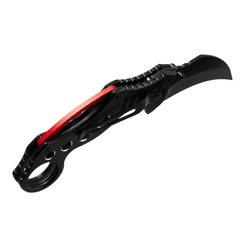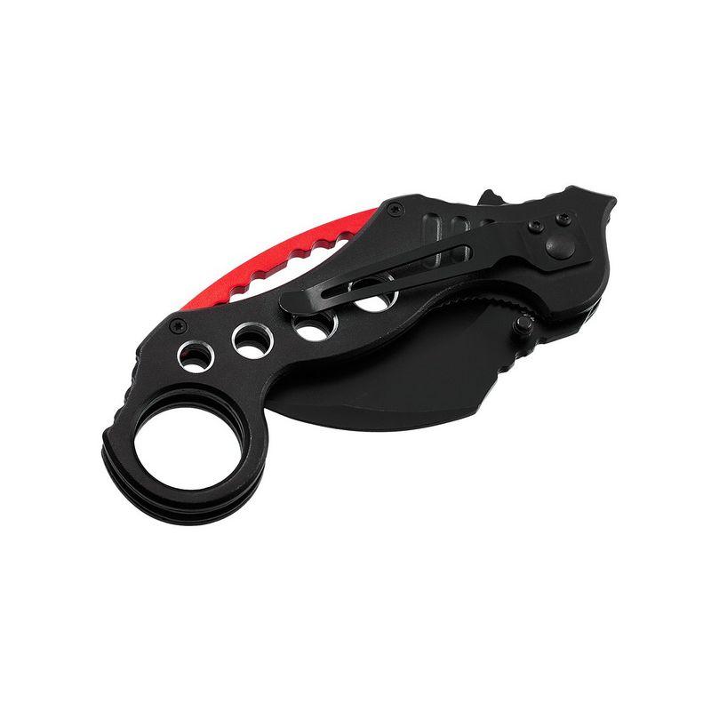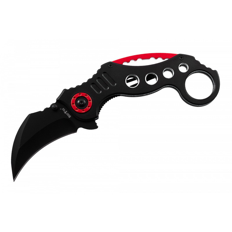 Тактичний ніж Grand Way 10417 Виробник: Grand Way Вид ножа: Керамбіт Загальна довжина, мм: 210 Довжина леза, мм: 75 Довжина рукояті, мм: 135 Товщина леза, мм: 2.6 Ширина леза, мм: 30 Марка сталі: 440 C Твердість сталі, HRC: 57-58 Поверхня леза: Black Oxide Матеріал рукоятки: алюміній Наявність кліпси: так Тип замку: Liner Lock (Assisted Lock) Наявність чохла: ні Маса, м: 150 Ручна робота: так Вид упаковки: кольорова картонна коробка