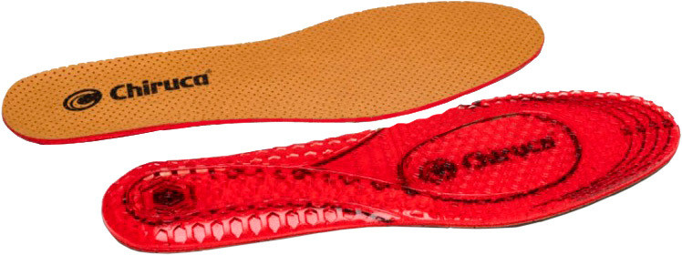 Гелеві устілки Chiruca ідеальний варіант для прихильників пішів ходьби та туризму. Устілки мають три шари: термогель, піна та мікрофібра. Запатентований термогель із лікарськими компонентами евкаліпта має високий ступінь амортизації. Гексагональна структура забезпечує рівномірне навантаження на поверхню та гарну циркуляцію повітря. Вугільна піна дає змогу усунути неприємний запах, знищуючи мікроби, що з’являються під час тривалого носіння взуття. Мікрофібра — приємна на дотик, має протиалергічні, антибактеріальні та терморегулювальні властивості. Виробник: Chiruca Модель: Устілки Розміри: S(26см), M (28,5см), L Країна походження: Іспанія