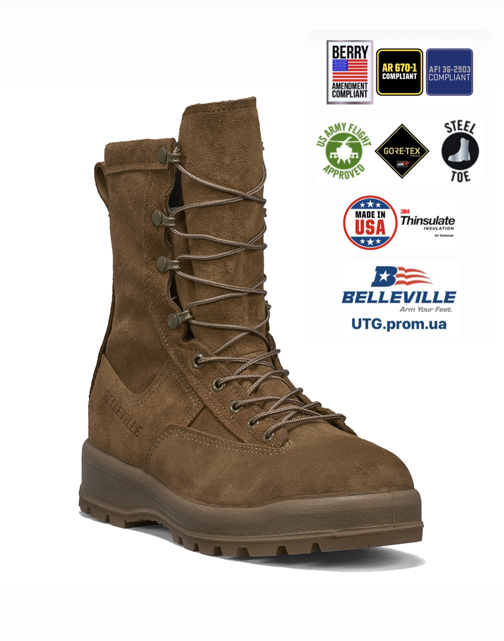 Ботинки Belleville C775ST Черевики Belleville C775 ST створені для максимального захисту ніг від холоду та вологи в екстремальних умовах. Ця модель має утеплювач GORE-TEX і сталевий носок, який забезпечує додатковий захист пальців ніг. Крім того, Belleville C775 ST забезпечують чудовий водонепроникний захист і високу стійкість до ковзання в гомілці завдяки підошві Vibram® 360° FIRE&ICETM зі спеціальної гумової суміші, яка залишається гнучкою за низьких температур. Черевики представлені в кольорі Coyote Brown, з висотою халяви 20 см. У черевиках є устілка та підошва з поліуретану, а також 600 г утеплювальної ізоляції ThinsulateTM, що забезпечує збереження тепла, навіть в екстремальних ситуаціях. Крім того, ця модель має максимальний захист п’яти. Belleville C775 ST — вибір для осіб, що працюють у складних та екстремальних умовах. Виробник: Модель: C775ST Розмір: 7,8,9,10,11,12,12,14 взуття: Ботинки Сезон: Зима Країна виробник: США Країна походження: США Стать: Чоловіча